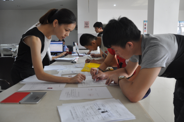 我校创业大学生正在填写资料 内坑工商所林所长为我校学生发放工商营业执照 合影 2015年10月27日上午,我校大学生创业基地首批4个创业项目正式进行工商注册登记,这四个创业项...