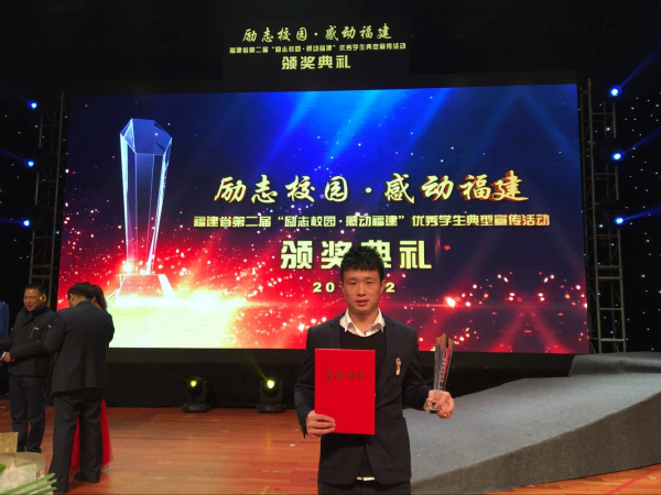 陈泽毅获得荣誉证书 12 月24日下午,第二届“励志校园·感动福建”优秀学生典型宣传活动颁奖典礼在福州举行。我校学子陈泽毅同学荣获“福建励志先锋”提名奖,学校获优秀组织奖,福建省教育厅等省十六部门领导...