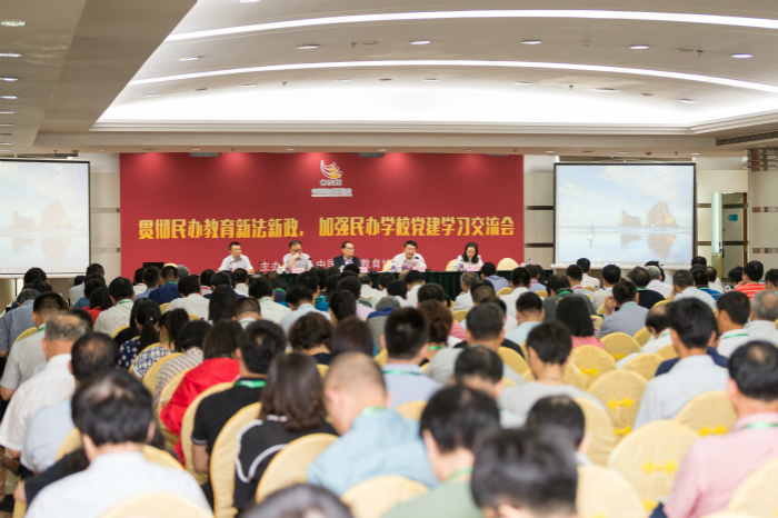 “贯彻民办教育新法新政,加强民办学校党建学习交流会”在北京召开 教育部副部长孙尧作讲话 党委书记林其天(左一),副校长吴滨如(右一)与中国...