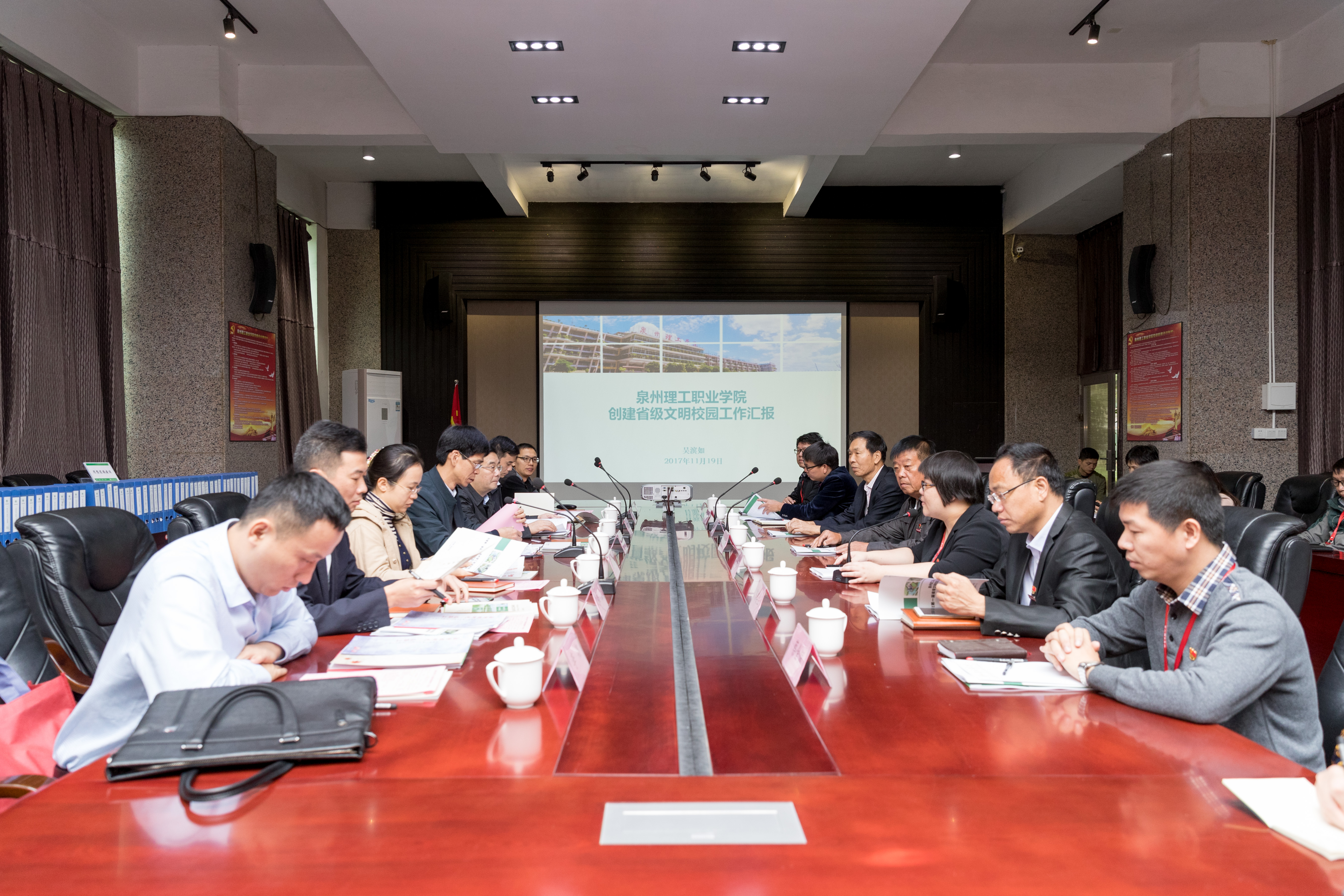 11月19日上午,根据福建省委文明办、省委教育工委的安排,由集美大学党委副书记洪文建担任组长的第一届省级文明校园考评组一行七人莅临我校,进行为期一天的考评工作检查。考评汇报会上,洪文建组长介绍了考评专家组成员并对本次考评作简要说明。他表示,创建文明校园是贯彻落实党的十九大精神和全国全省高校思想政治工作会议精神的重要举措,考评组将从听取汇报、实地考察、材料审核与调查访谈等方面进行检查。校党委副书记、...