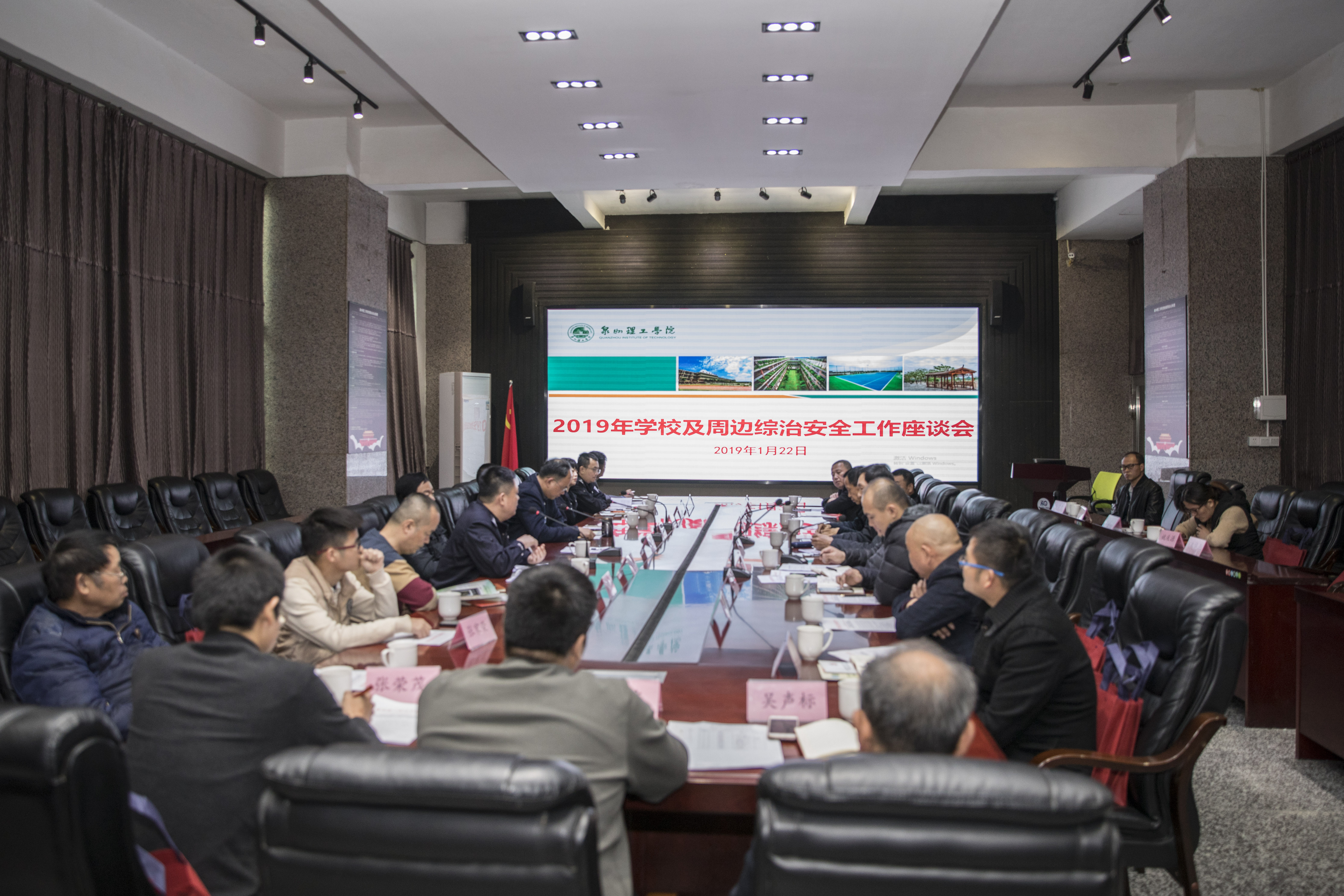 1月22日下午,泉州理工职业学院(本科)在主楼第一会议室举行2018年周边综治安全工作座谈会,校党委林其天书记、副校长庄文瑞、党委委员、保卫处处长杨津平等各书院书记、部门负责人、保卫处工作人员以及内坑镇政府党...