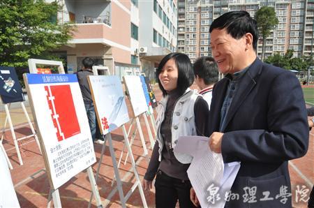 图为院长苏志明正在聆听一等奖获奖学生讲解作品设计理念 12月3日上午,由新闻中心主办的“12.4”法制宣传作品展在我校操场举行。 此次展览以 “ 弘扬法治精神,促进社会和谐 ” 为主题...