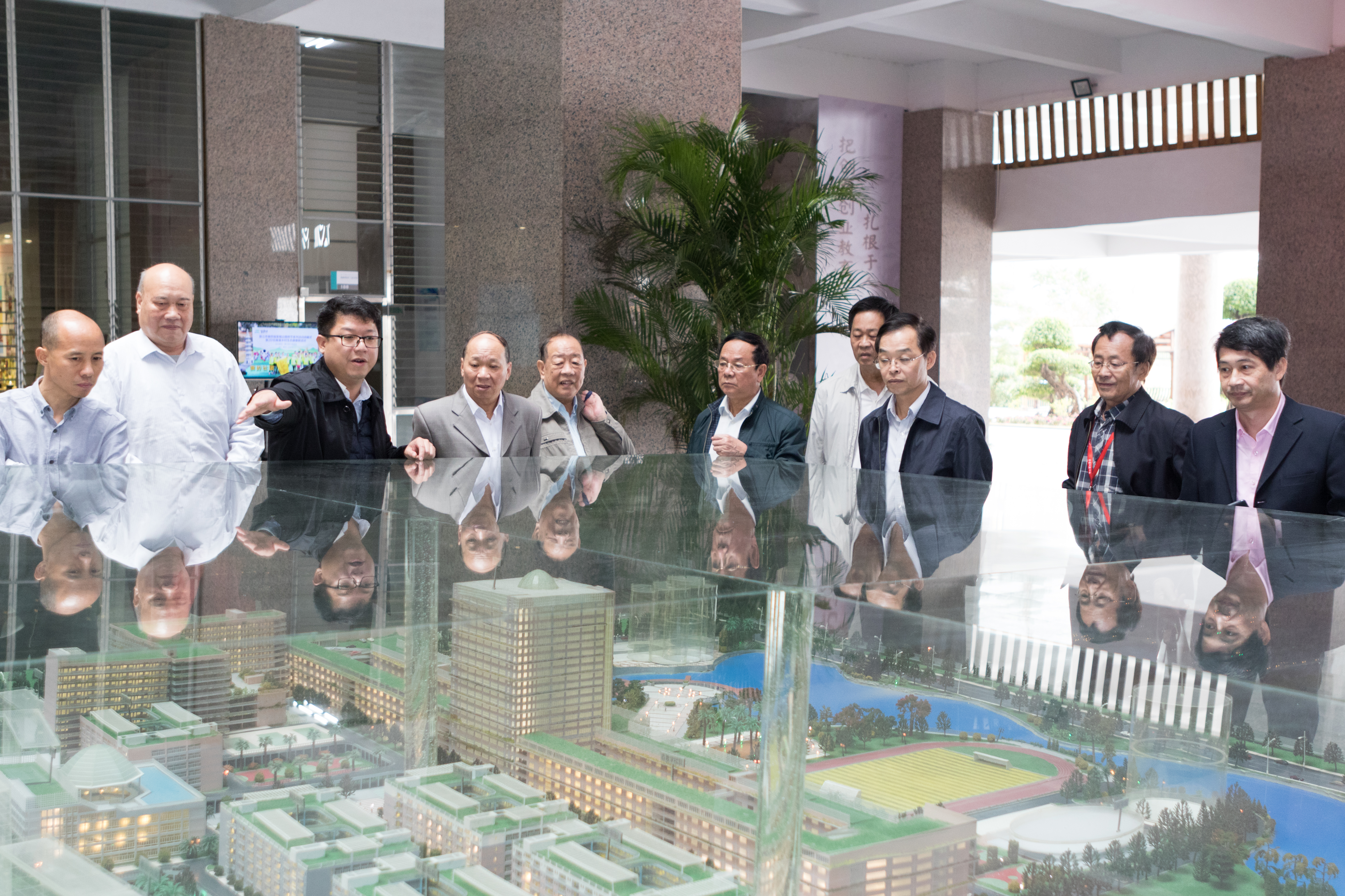 专家学者一行人参观了我校校史馆、绿色建筑实验室、清洁能源实验室等地,对我校生态校园环境给予充分肯定和极高评价。