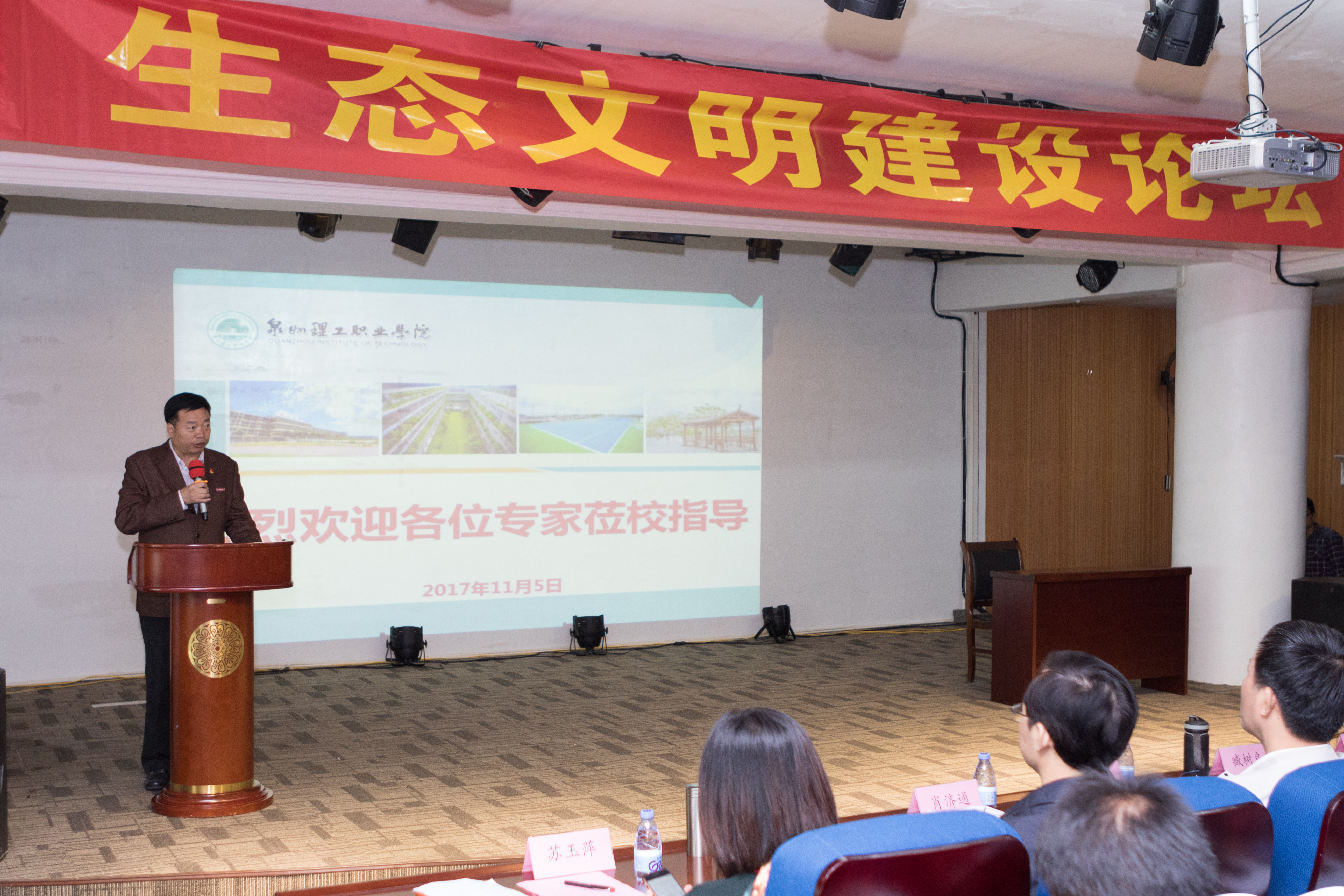 时值党的十九大闭幕,福建省社会科学普及宣传周在晋江启动之际,11月5日,由泉州市社会科学界联合会和福建省生态文明建设促进会主办,泉州理工职业学院与辽宁大学广播影视学院共同承办的生态文明论坛在我校举行。此次论坛也是泉州市2017年社科活动重点资助项目,福建省生态文明领域专家学者汇聚一堂,共话福建生态省建设和绿色经济发展之路。