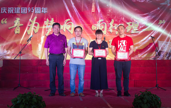 为了本次决赛,这些班级在历经近一个月的紧张排练下将以高超的唱功与昂扬向上的精神面貌面对接下来的比赛。首先,开场是由指导老师丁雯雯指挥校合唱团的成员带来了激情的《神圣的战争》,激昂高亢的歌声深深地感动在场老师与同学们的爱国之心。其中16油储1班给大家带来的《追梦赤子心》,高音更是让人震撼,“向前跑!”身为青年大学生就应该向前跑,向前冲!在比赛过程中,进行校内五四评优的表彰。由学工处处长杨津平老师为112名优秀团干251名优秀团员进行表彰,由庄文瑞副校长为各院系的14个优秀团支部进行了表彰。由林其天书记为共青团校委员会副书记蒋滨滨老师、商学院团总支书记罗永珍老师及工学院团总支书记黄胤聪老师优秀团务工作者进行表彰。最后,由臧树良校长为工学院和商学院两个优秀团总支部进行表彰。