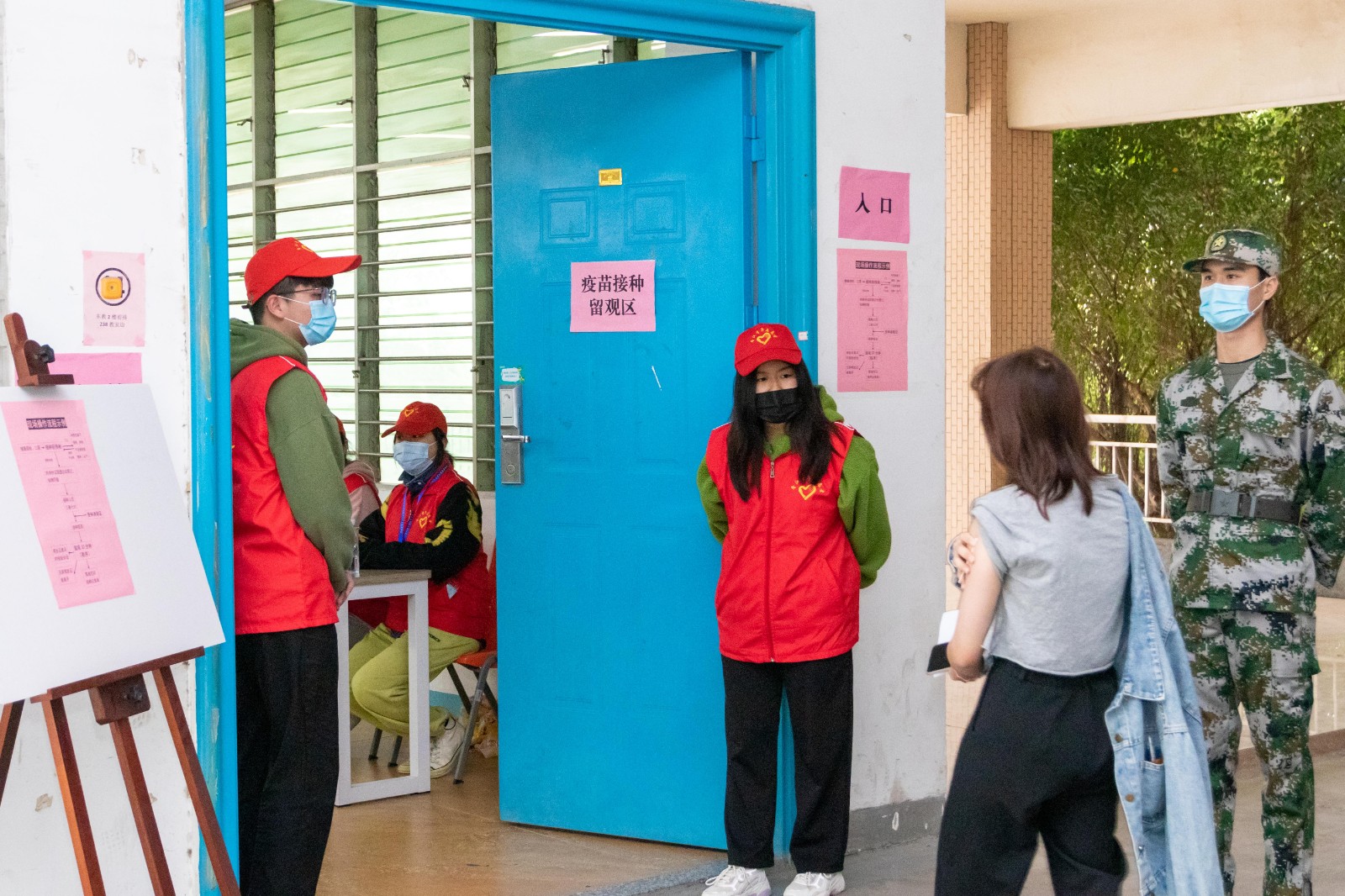 14:30校内接种点正式启用,首日顺利完成430名学生的疫苗接种。