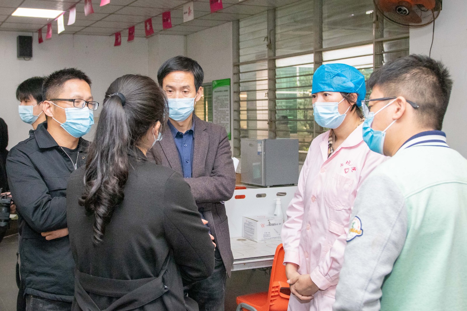 市领导高度重视,上午11点,晋江市市长张文贤率市委常委黄文福、副市长黄少伟、政府办主任吴靖宇、卫健局局长纪刚宏、内坑镇镇长林灿煌、高教办主任陈志刚等一行莅校检查指导疫苗接种准备工作。校领导吴滨如、傅志雄、庄文瑞、郭霏霏、蔡金佩等陪同。