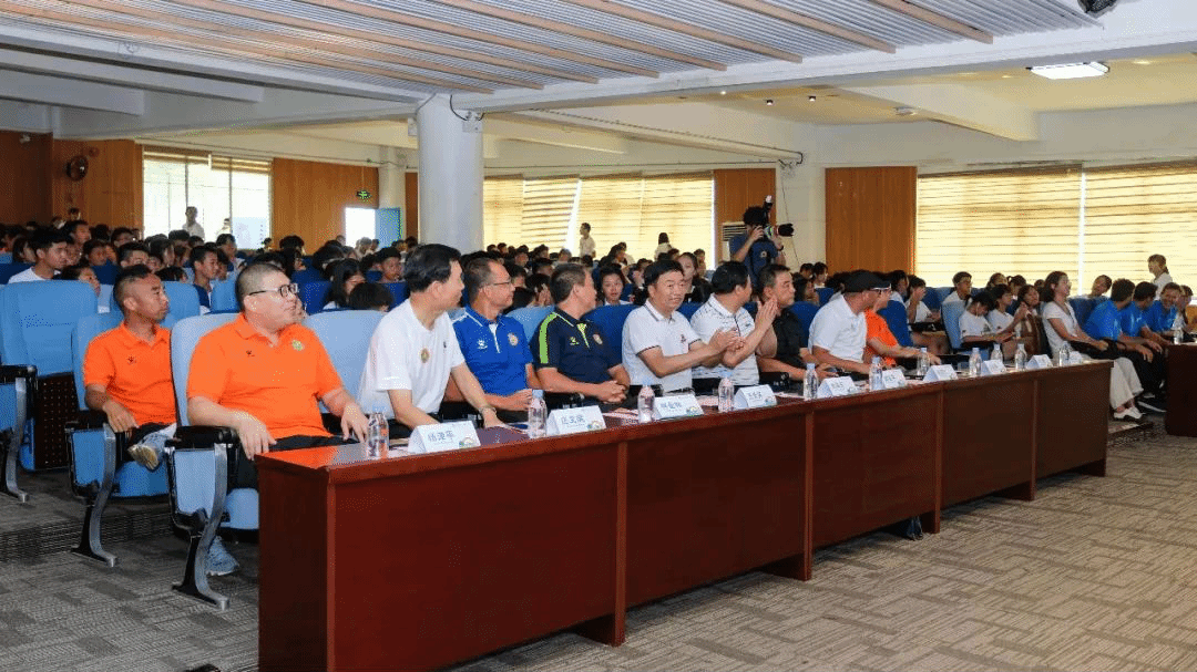 福建省教育厅体卫艺处处长谢友平、江西省教育厅体卫艺处副处长徐鹰、全国青少年校园足球专家委员会教学工作组副组长郝成江、教育部校园足球裁委会委员王长其、王发振、福建省校园足球专家小组成员林金标及四位西甲联盟外籍专家Carlos Cañaveras、José Ignacio S.B.、Juanjo Guerra、Borja Lema等领导专家出席仪式。泉州职业技术大学党委书记林其天、副校长庄文瑞、党委委员杨津平等校领导出席仪式,仪式由泉州职业技术大学副校长林文艺主持。