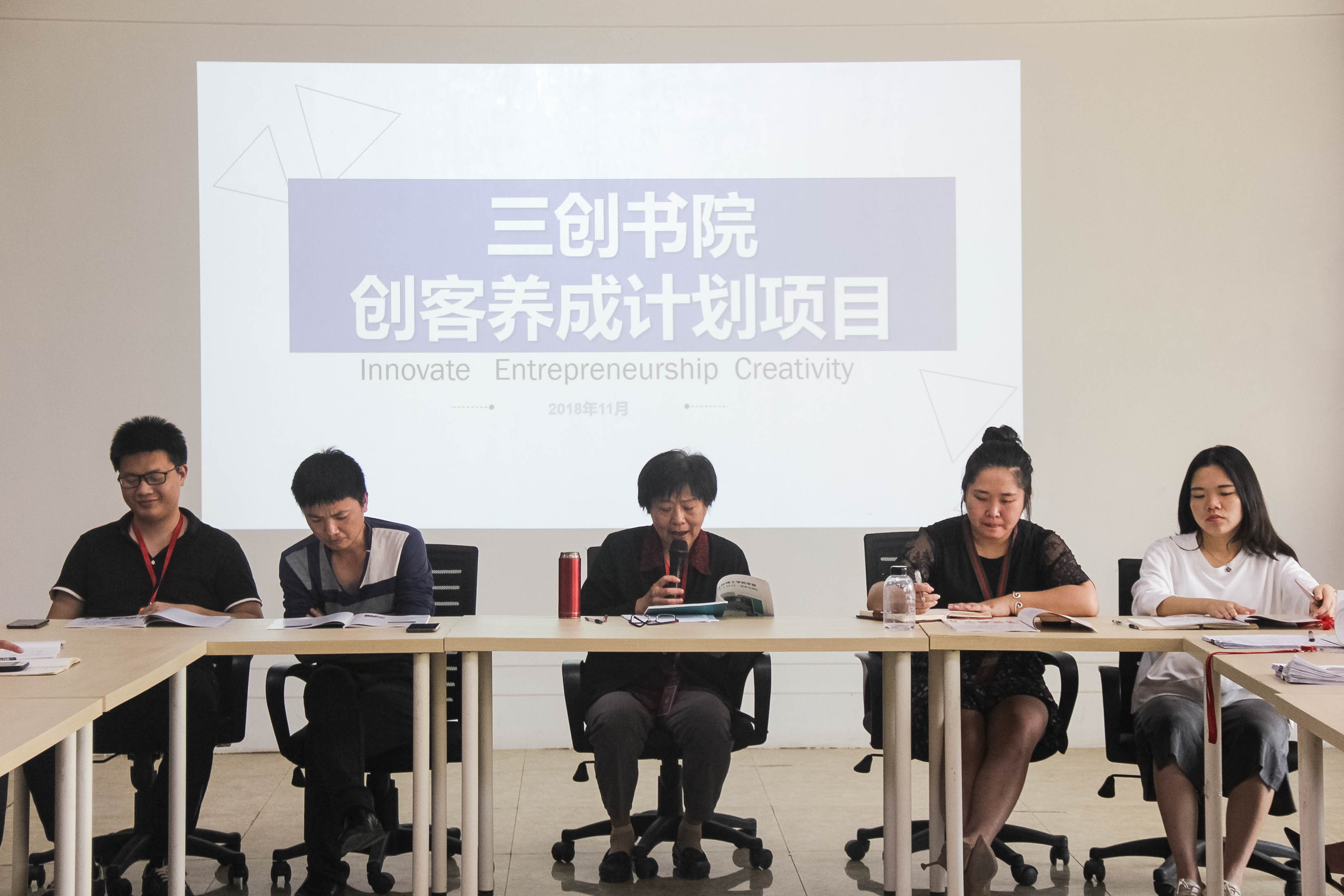 2018年11月8日下午15:00三创书院“创客养成计划”项目首次分享会,在第二会议室举办。规划处赵群老师、三创书院党支部书记王园园老师、海峡两岸三创学院涂永坚老师、谢明强老师、三创书院团总支书记王艳苹老师、三创书院18级辅导员陈芳老师、曾海媚老师参与了此次活动。