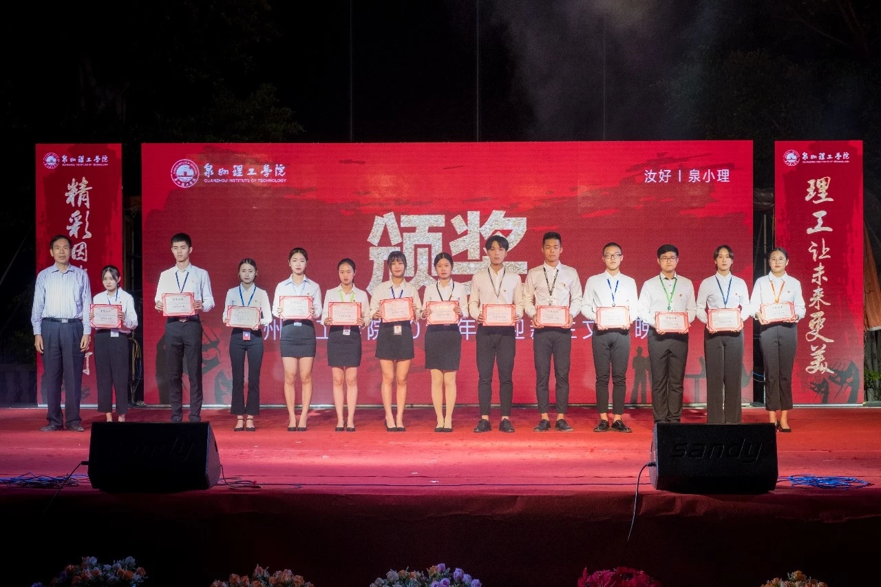 在迎新晚会上,庄文瑞副校长为优秀学生干部代表颁奖