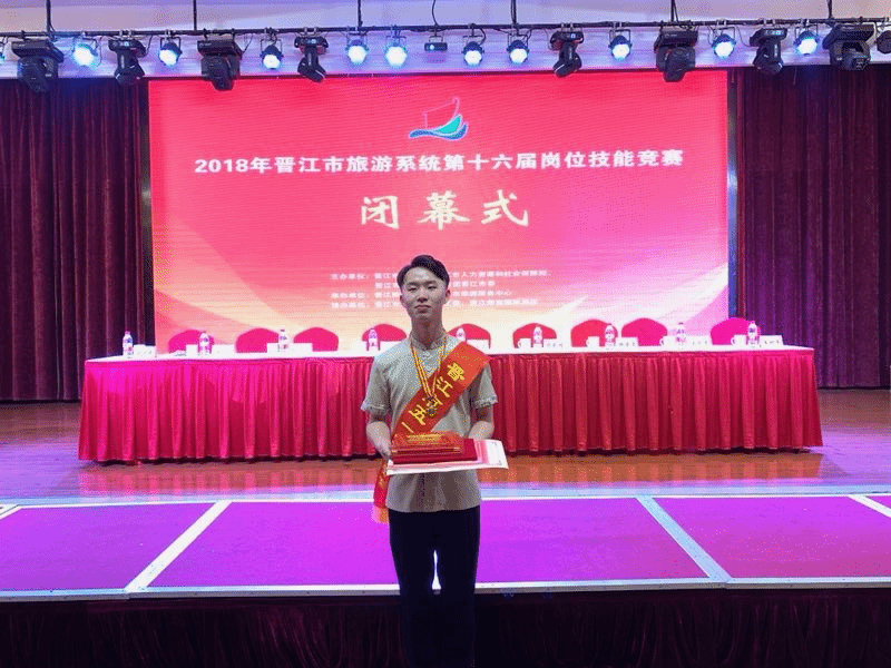 我校2016级酒店管理专业胡宇廷同学代表晋江宝龙酒店参加晋江市第十六届旅游系统岗位技能竞赛中式铺床赛项,荣获第一名并获得晋江市五一劳动奖章及晋江市“青年岗位能手”荣誉称号。