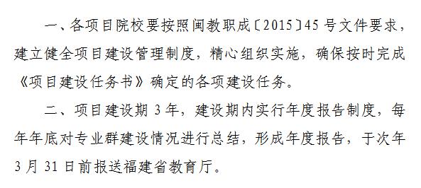 根据《福建省教育厅关于推进职业院校对接产业加强专业群建设的通知》(闽教职成〔2015〕45号)、《关于做好2017年省级职业教育重点建设项目申报工作的通知》(闽教办职成〔2017〕2号)要求,经学校申报、各设区市推荐、专家评审、公示,确定福建船政交通职业学院汽车运用等71个专业群为2017年福建省职业院校服务产业特色专业群建设项目,