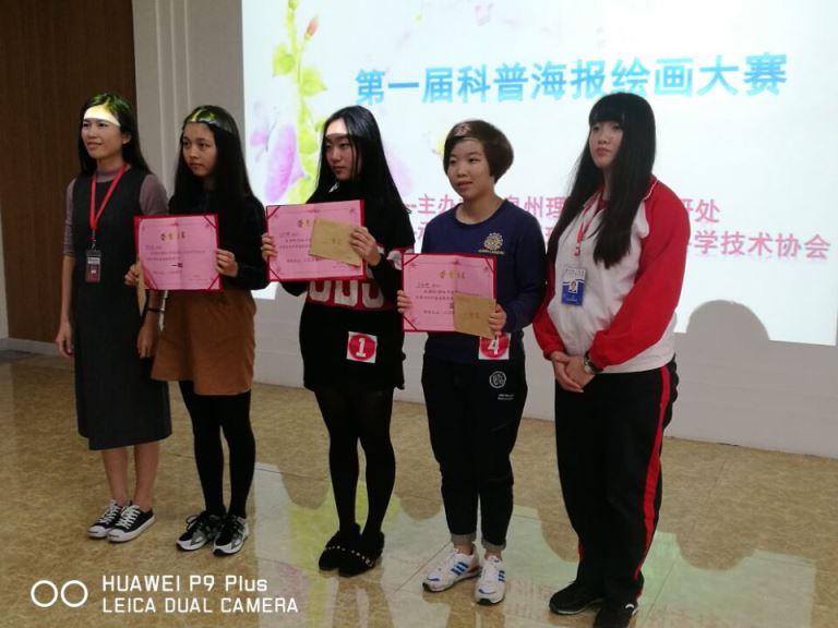 最终,六位选手在大赛中脱颖而出,其中赖舒瑾同学荣获本次大赛一等奖,吕芷薇同学荣获二等奖,吴倩婷同学荣获三等奖,王龙鑫、林国镇、陈钰三位选手荣获本次大赛优秀奖。希望通过这次比赛倡导广大学生热爱科普、崇尚科学,同时为大家提供一个学习、沟通、交流的平台,促进学生之间的交流与合作,展现我校学生积极向上的精神风貌和艺术创作水平。