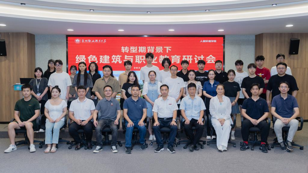 8月14日下午,泉州职业技术大学举办“转型期背景下绿色建筑与职业教育”研讨会。会议特邀天津大学建筑学院原书记、澳门城市大学博士生导师张玉坤教授,福州大学建筑学院副院长、博士生导师林志森教授,黎明职业大学土木建筑工程学院丁瑜鸿教授等嘉宾。泉州职业技术大学党委书记傅志雄,科研处处长任莉娟,人居环境学院院长关瑞明、书记兼副院长张艺能、环境艺术设计专业带头人陈力、环境艺术设计专业主任陈淼淼、建筑室内设计专业主任叶加根,以及相关专业教师和学生参加会议。