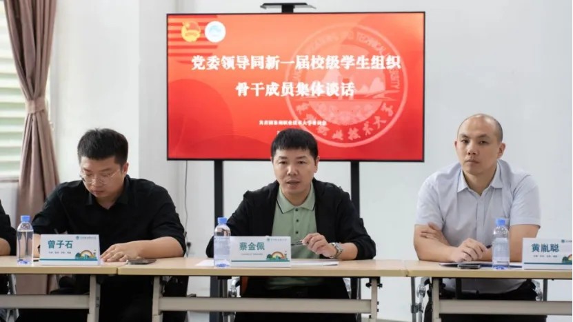 近日,泉州职业技术大学党委副书记、副校长蔡金佩和学校新一届团委学生骨干及校学生会主席团成员集体谈话。