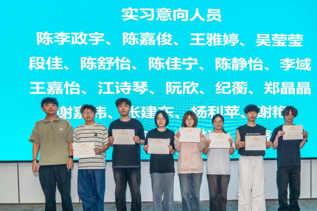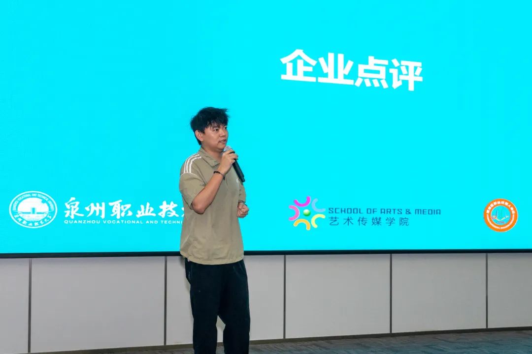 参加当天实训汇报会的有:泉州海新服装科技有限公司品牌总监黄雪胶、业务总监洪炳豪、海外市场业务总监梁妮,泉州职业技术大学艺术传媒学院书记涂永坚、服装与服饰设计专业主任李亚兰、服装与服饰设计专业营销方向教师杨子豪、学业辅导员钟荣。