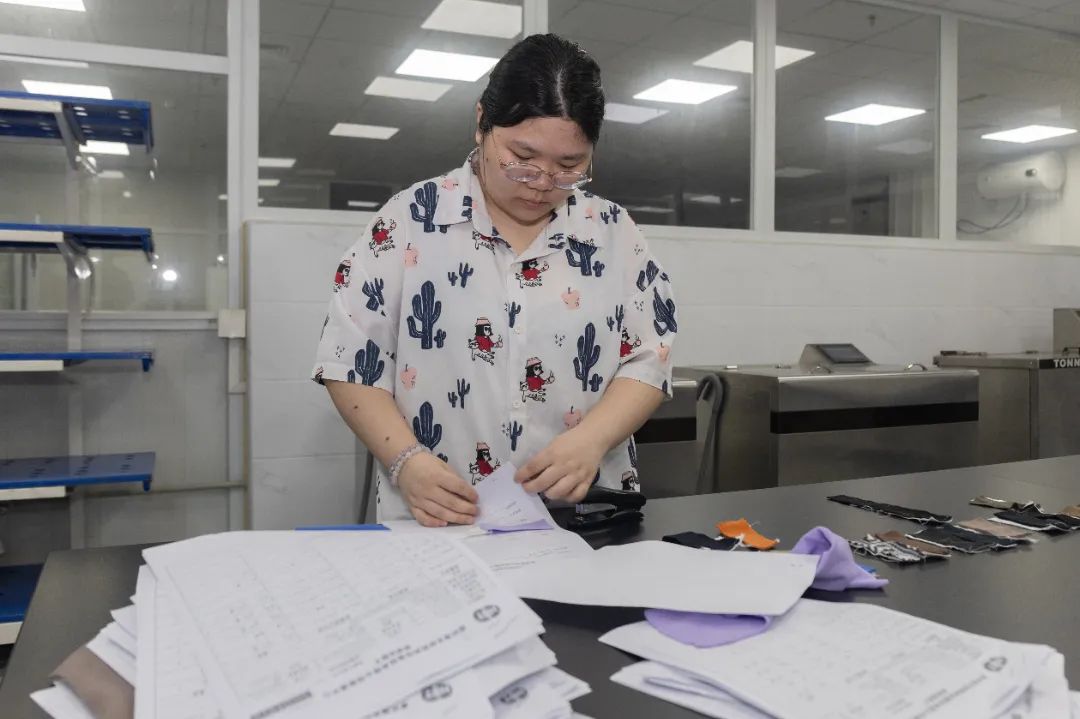 实训初期,面对PH值检测的精密仪器和标准化流程,我曾因操作生疏而出现失误。但是带教老师没有责备我,而是手把手教我如何规范裁剪、浸泡和震荡布料,反复强调“细节决定数据可信度”。在他的指导下,我逐渐掌握了从校准仪器到数据录入的全流程操作,甚至能独立完成多批次检测任务。这段经历让我明白,看似重复的工作背后,藏着对耐心和专注力的极致要求。