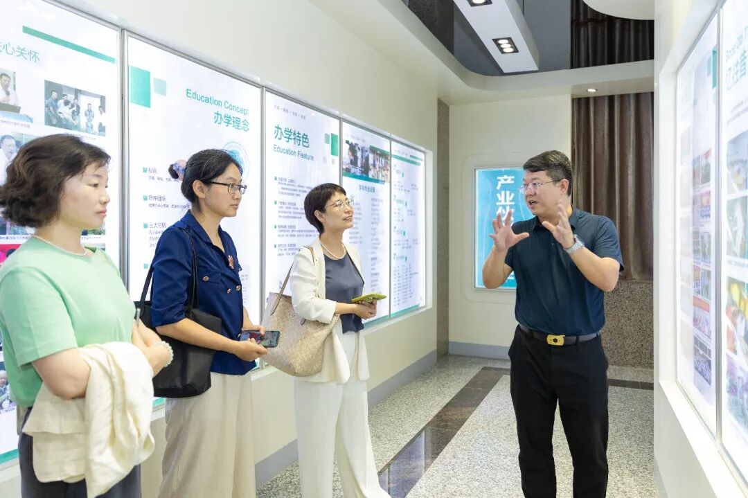 薛莉一行先后参观我校生态校园沙盘、校史馆、艺术设计展厅、电商直播基地、数智产教融合展厅及行云新能源产业学院,实地走访各类教学科研场所。我校领导结合场所功能定位,详细介绍学校发展历程、校企合作模式、专业群建设成效及数智化人才培养路径等核心内容,展现我校在教学科研与产教融合领域的整体布局与实践成果。