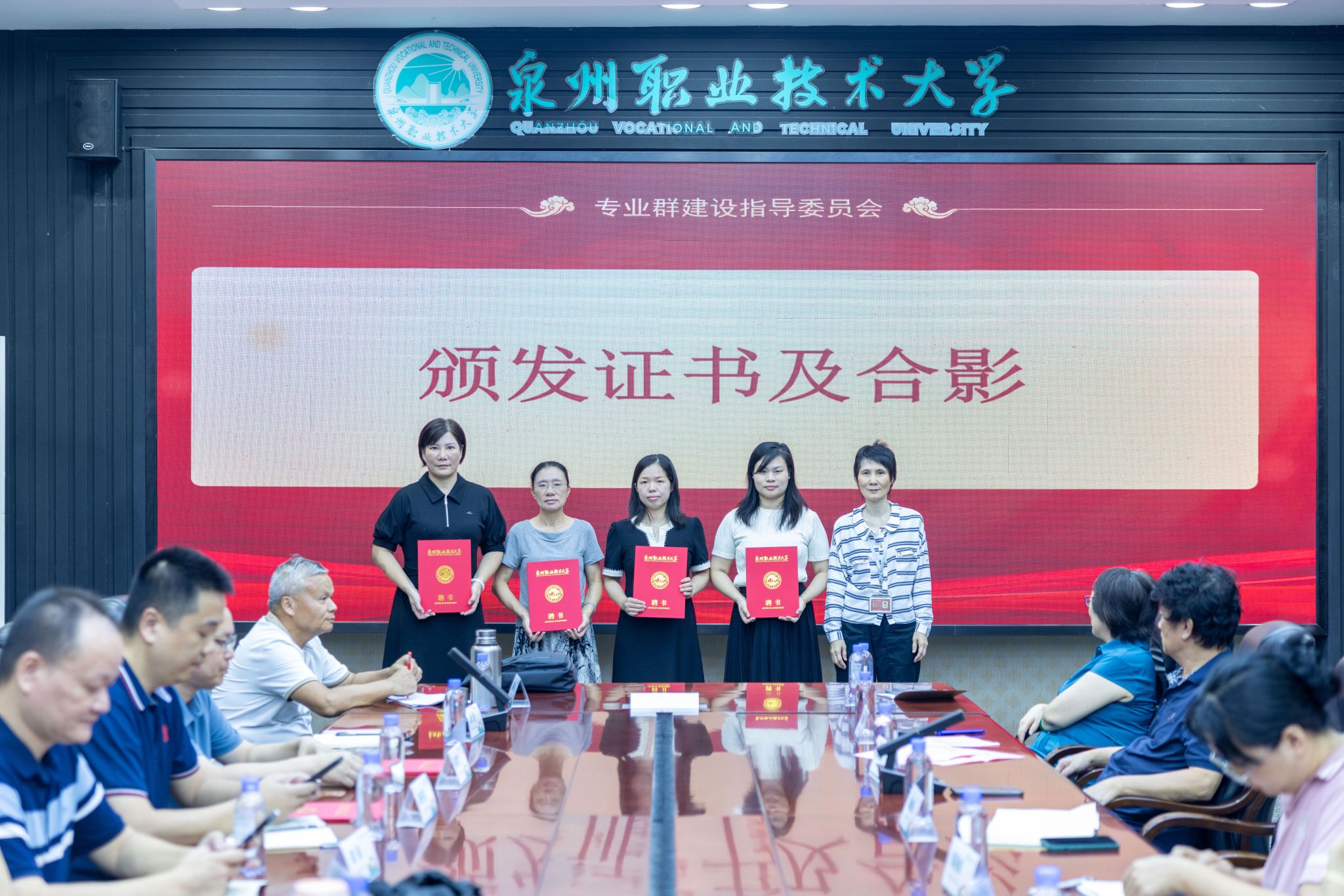 ▲ 周燕妮为杨建华、龚强、陈伟强、蔡加强、林梨珍五位专家颁发聘任证书