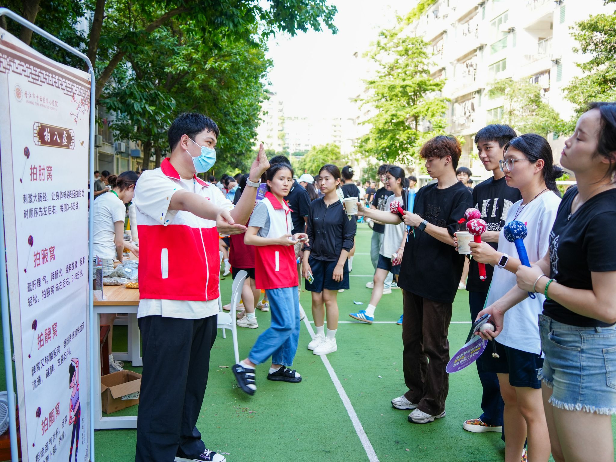 ▲ 社区文化节开展中医文化体验,开展“拍八虚”养生功法教学活动,通过简单易学的拍打穴位,疏通经络、调和气血,感受传统养生智慧的独特魅力