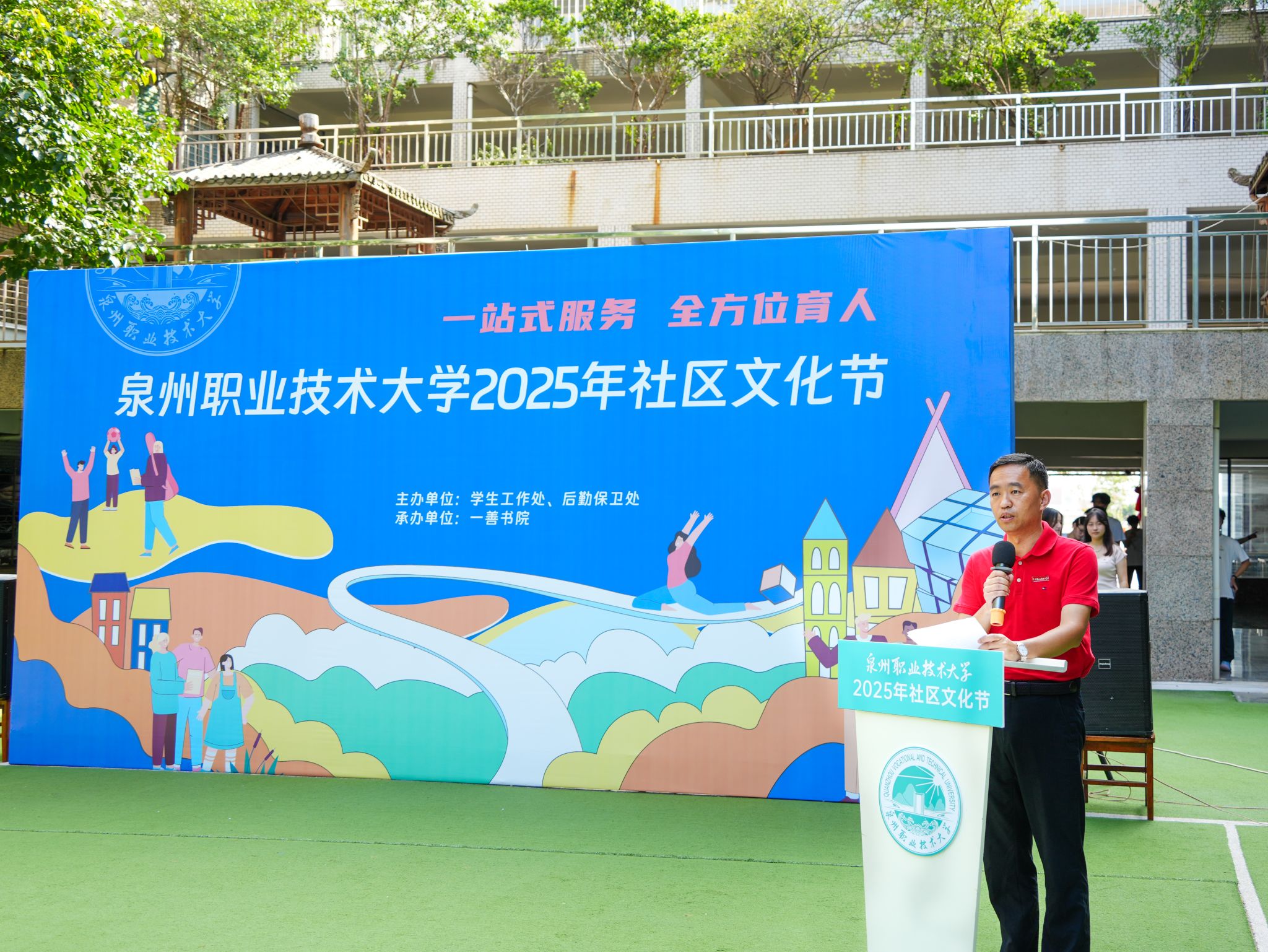 为深入贯彻落实教育部关于 “一站式” 学生社区综合管理模式建设要求,进一步落实“立德树人”根本任务,积极构建“三全育人”新格局,推动“一站式”学生社区综合管理模式建设走深走实,6月11日,泉州职业技术大学举办了2025年社区文化节。