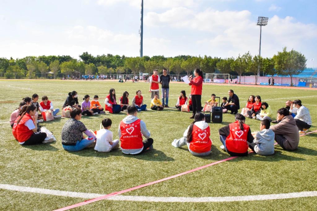 ▲2023年12月,在福建省晋江市民政局的指导下,晋江市益心社工服务中心、晋江市向阳青少年社工事务所联合泉州职业技术大学志愿者队伍共同开展“四帮四扶”多对一助学活动。图为社工组织帮扶对象与志愿者一起做破冰游戏。
