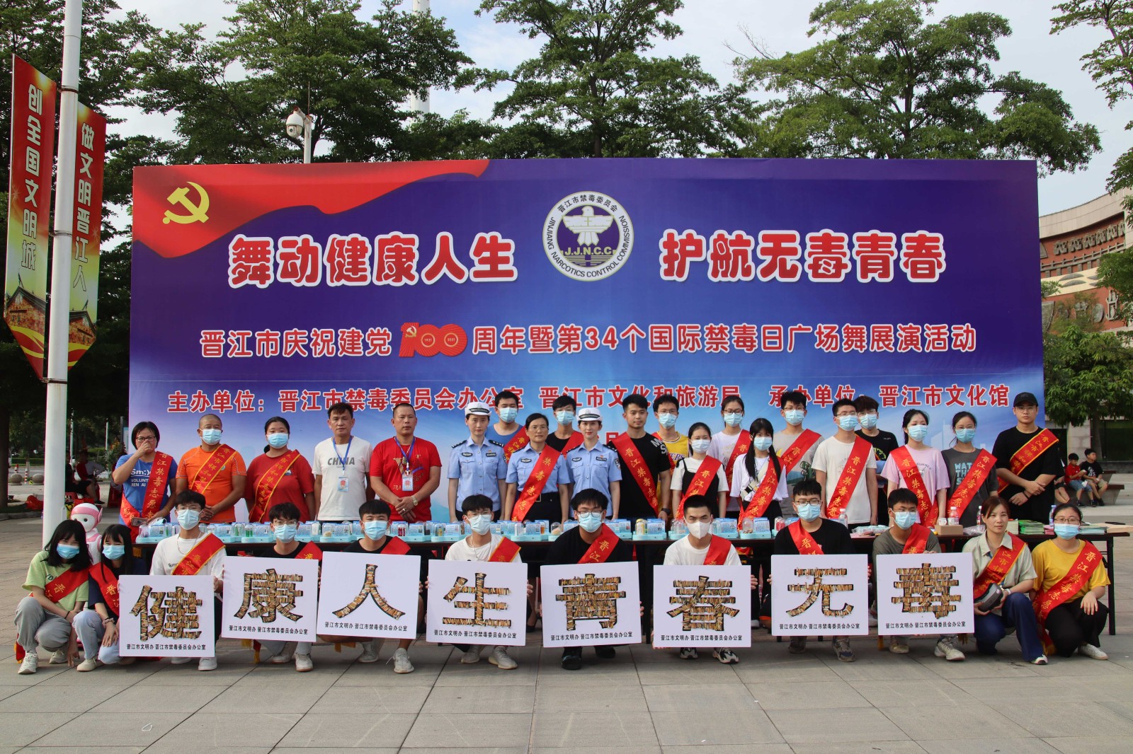 为进一步提高广大青年学子识毒、防毒、拒毒的意识,在第34个国际禁毒日到来之际,6月27日,由晋江市禁毒委员会办公室组织开展的“舞动健康人生,护航无悔青春”禁毒志愿宣传活动在晋江市文化中心广场举办,四实书院团委实践部组织24名青年志愿者参加此次活动。