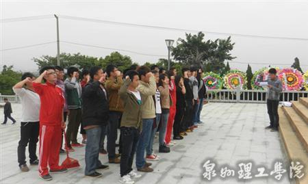 43日,车辆系团总支书记蒋滨滨老师带领车辆系1112级入党积极分子前往内坑镇五峰公园,祭扫烈士陵园。现场,打扫烈士陵园,并进行入党宣誓,此外还参观了中共泉州中心县委历史纪念馆。此次活动对于激发广大青年的爱国热情,让学生了解抗日先烈们的英雄事迹具有重要的教育意义。